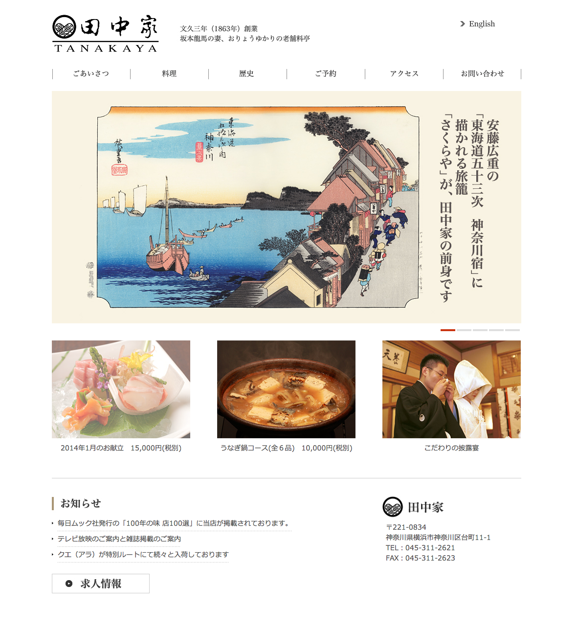 老舗料亭「田中家」のサイトリニューアル